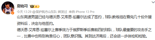 德沃恩·艾库恩-珀塞尔加盟山东男篮